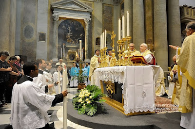 [2] Todos estos ritos contienen palabras válidas consagratorias del pan. También tienen formas esenciales válidas para el vino si se tiene en cuenta sólo las primeras palabras, “Este es el cáliz de mi Sangre …” para ser suficiente para la validez. No quiero entrar aquí en una discusión sobre este punto en este artículo. El punto aquí es que, a pesar de una consagración válida, una misa puede ser no-católica debido a falsas ceremonias que rodean el rito esencial.